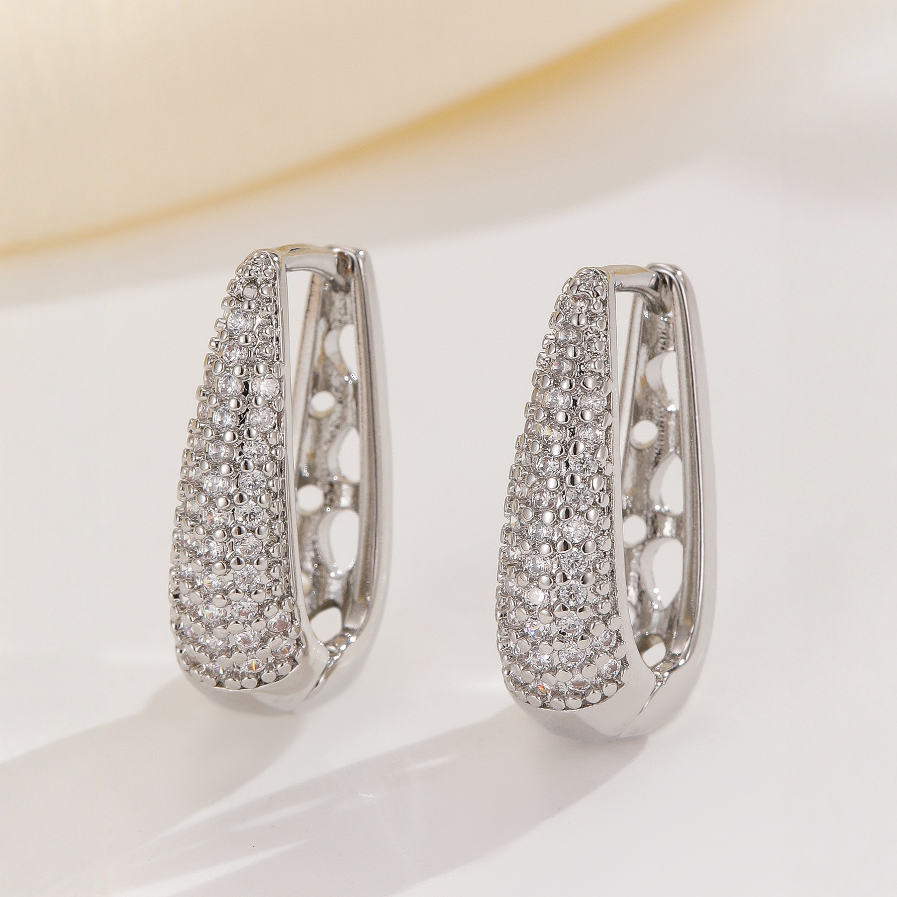 Mikro tsirkoonidega U-kujulised kõrvaklambrid on ideaalne aksessuaar, mis sobib igapäevaseks kandmiseks ja erilisteks sündmusteks. Need elegantsed kõrvaklambrid pakuvad kaunist sära ja lisavad teie välimusele naiselikku võlu. Valmistatud kvaliteetsetest materjalidest, on need kergekaalulised ja mugavad kanda, võimaldades teil neid kanda terve päeva. Hoidke neid puhtana, pühkides aeg-ajalt pehme lapiga.