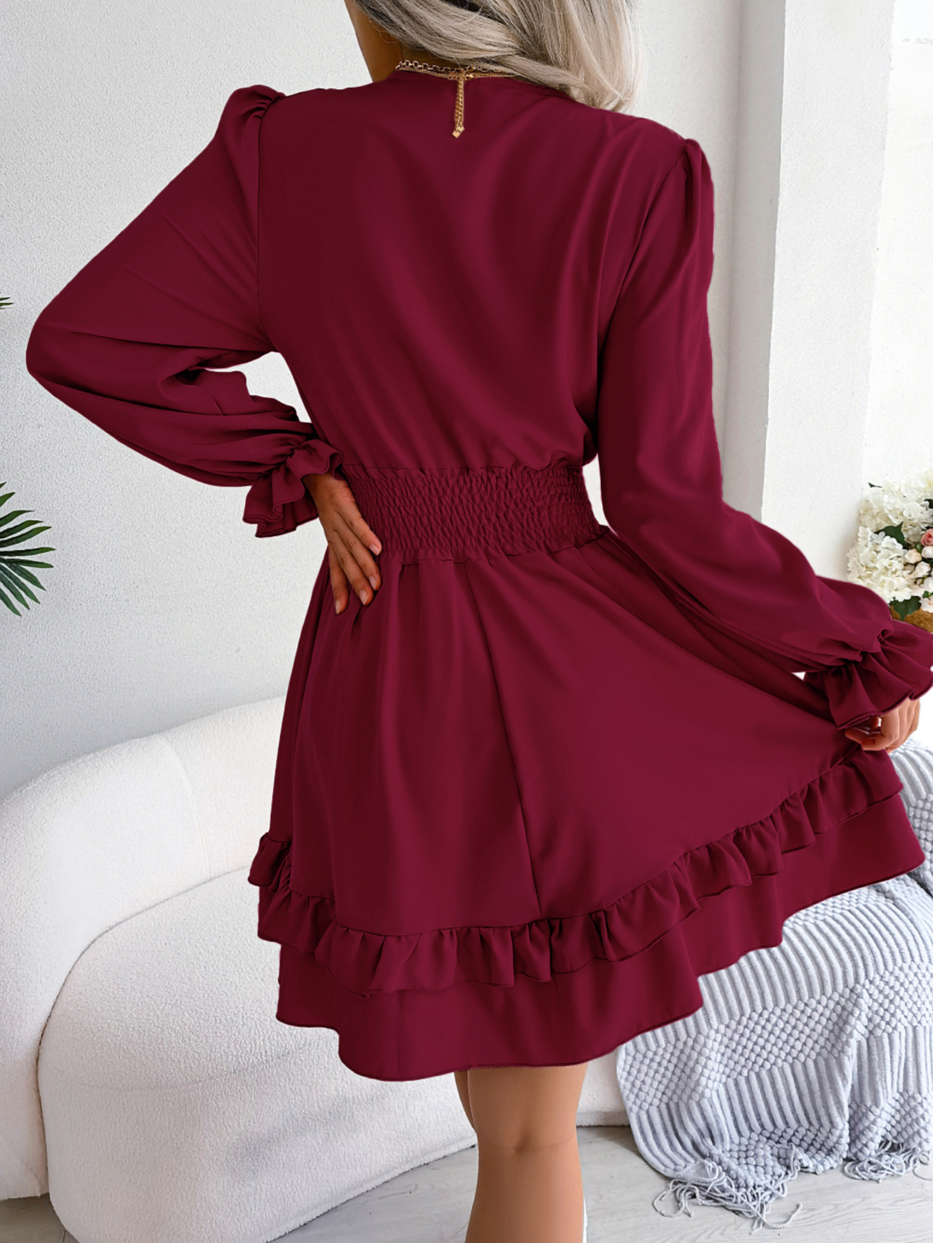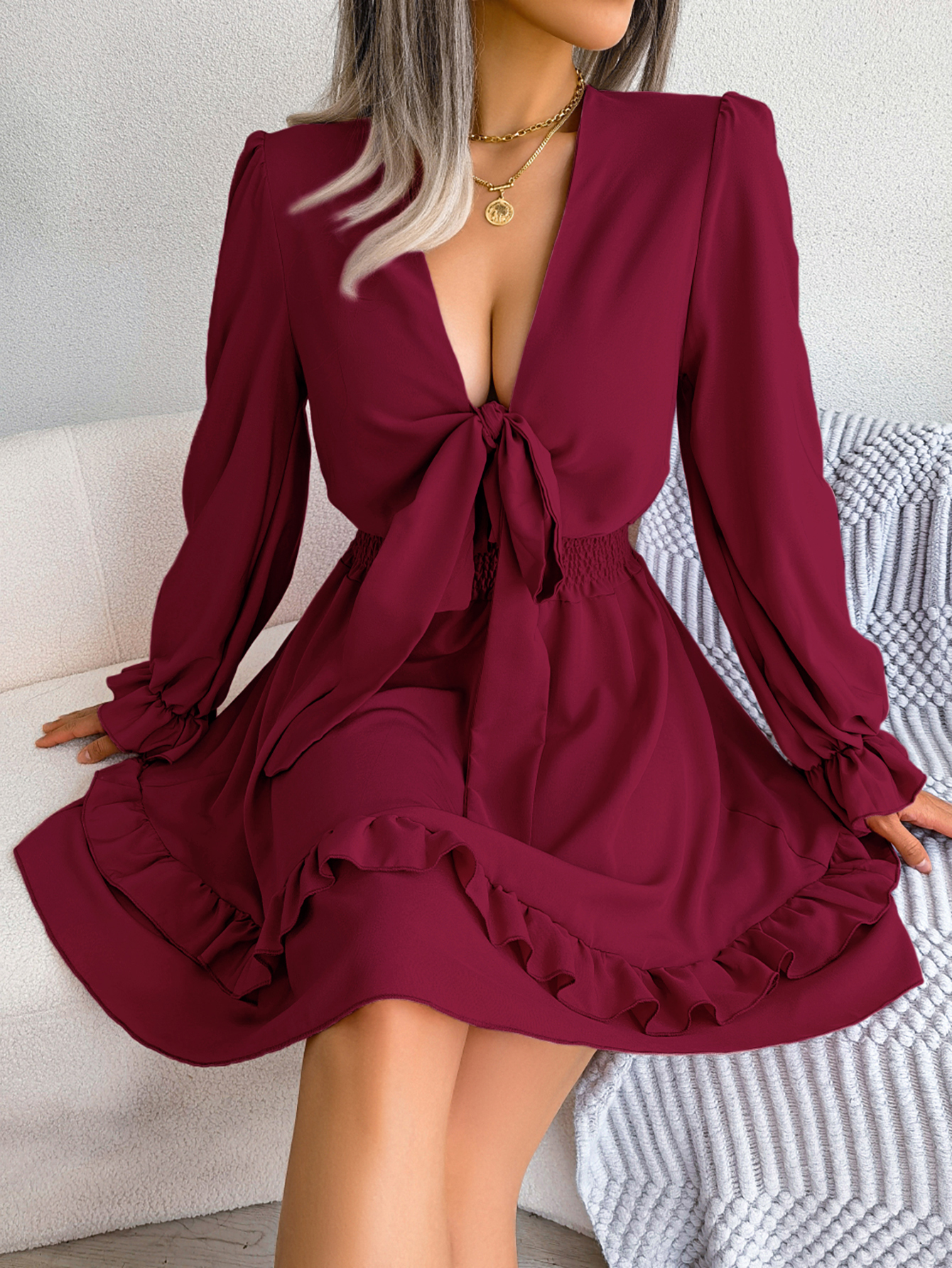 naiste lõdva vööga volangidega kleit